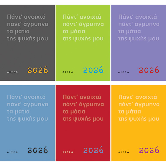Ως τίτλο στο Ημερολόγιο της Αιώρα για το 2026 επιλέξαμε τον στίχο του Διονύσιου Σολωμού «Πάντ’ ανοιχτά, πάντ’ άγρυπνα, τα μάτια της ψυχής μου», από το ποίημα Οι Ελεύθεροι Πολιορκημένοι.