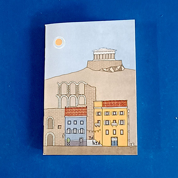 Ideale per prendere appunti, disegnare o annotare le proprie letture, il nuovo taccuino delle Edizioni Aiora é un invito a rallentare e a tornare al piacere della scrittura a mano. Con l’illustrazione di Myrsini Maneta la copertina è una piccola opera d’arte.